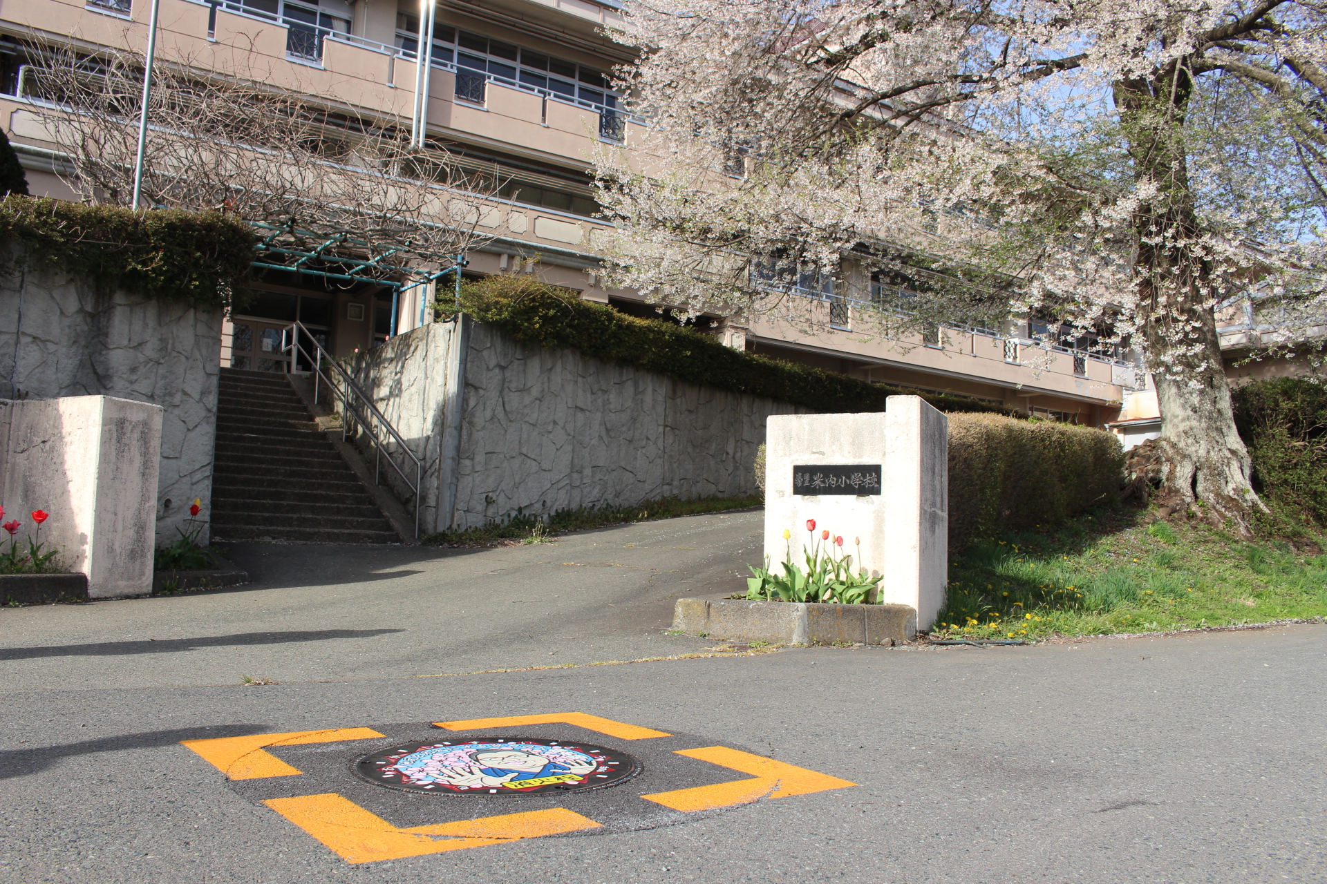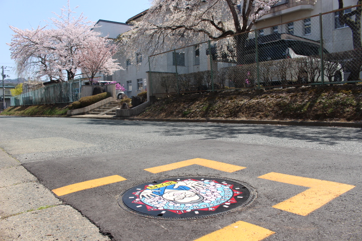 米内小学校前のデザインマンホール