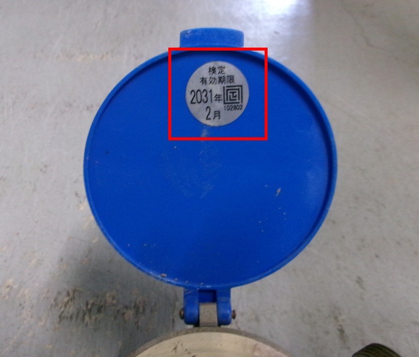 水道メーターの蓋(青/緑/グレー)の裏に有効期限を示すシールが貼ってあります。
