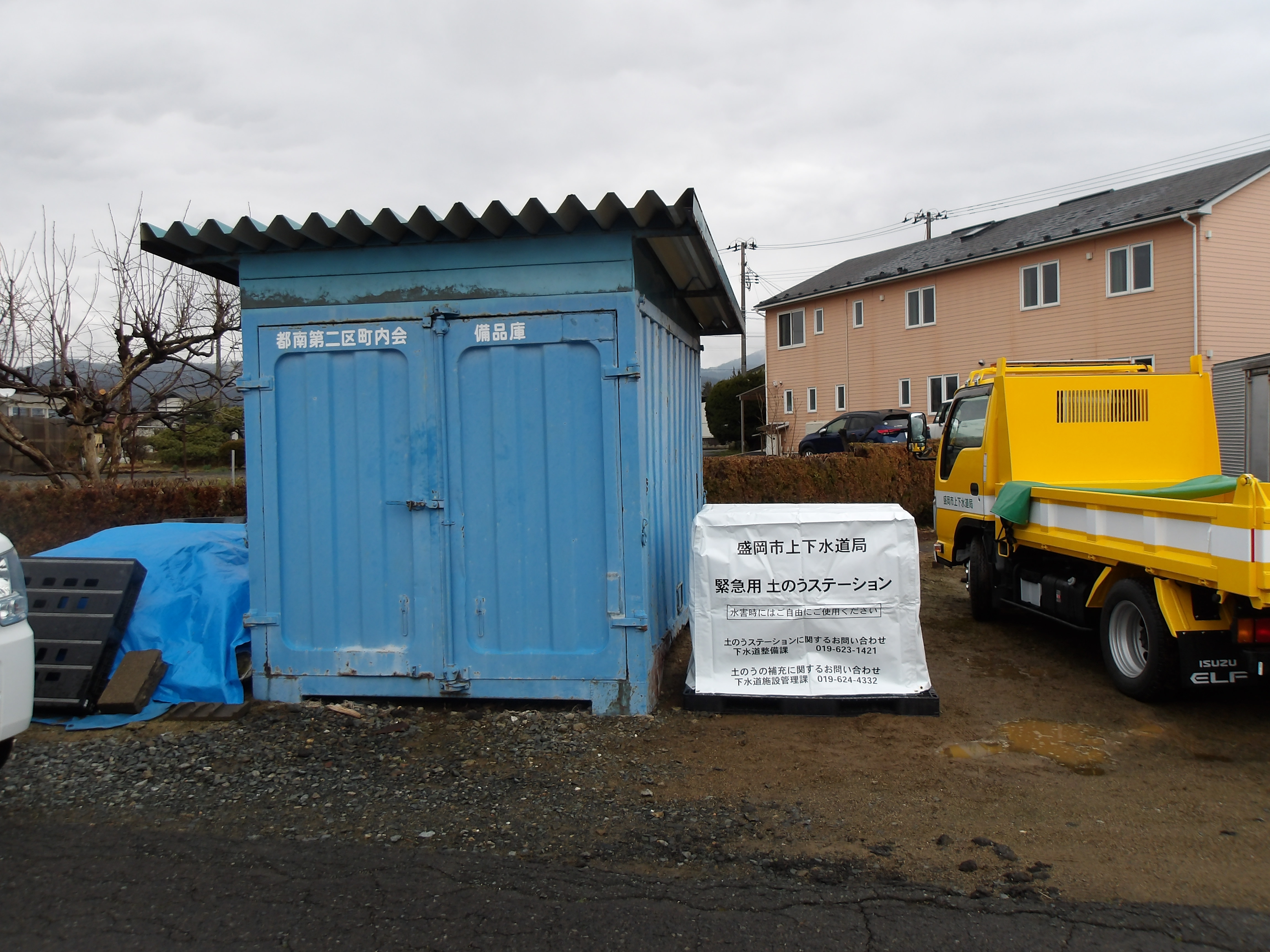 緊急用土のうステーションについて都南第二区町内会から新たに申請があり、写真のとおり設置致しました。