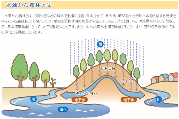 上下水道局の水源かん養林の管理については、イラストや写真を使って紹介していますので、詳しくは、こちらをご覧ください。