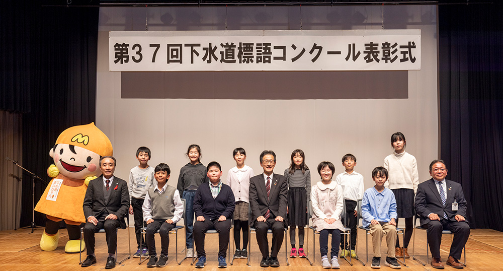 令和6年2月5日に実施された下水道事業70周年記念セレモニーの終了後、記念撮影を行いました。